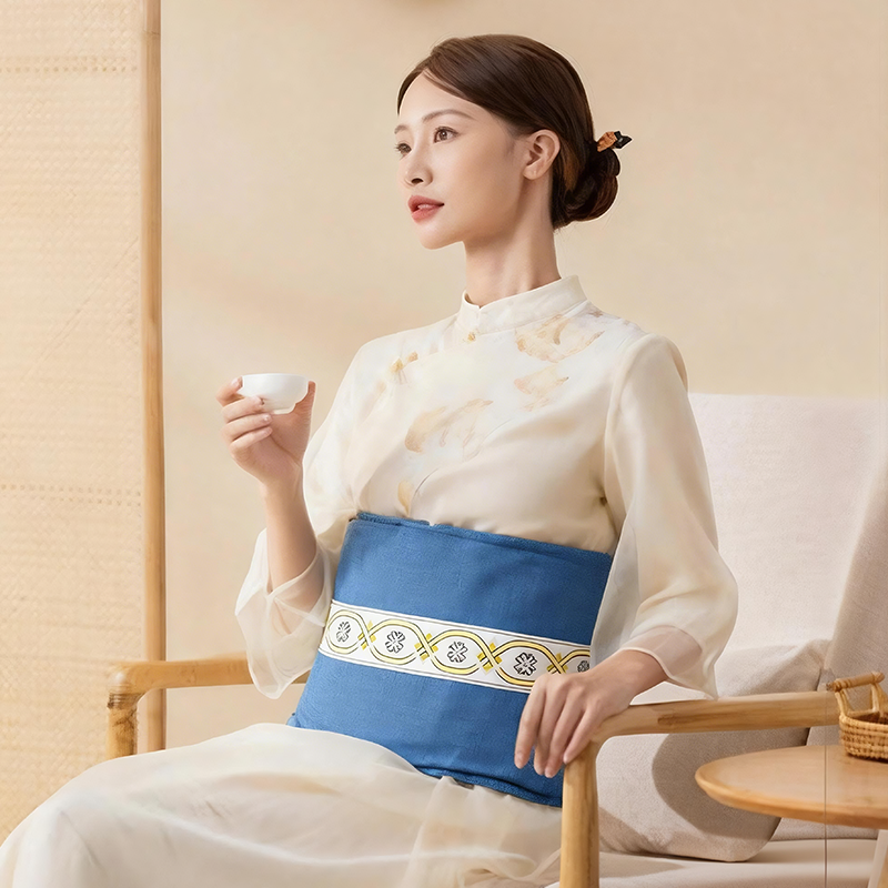 首の後ろから肩にかけて当て、自然にフィットさせます。